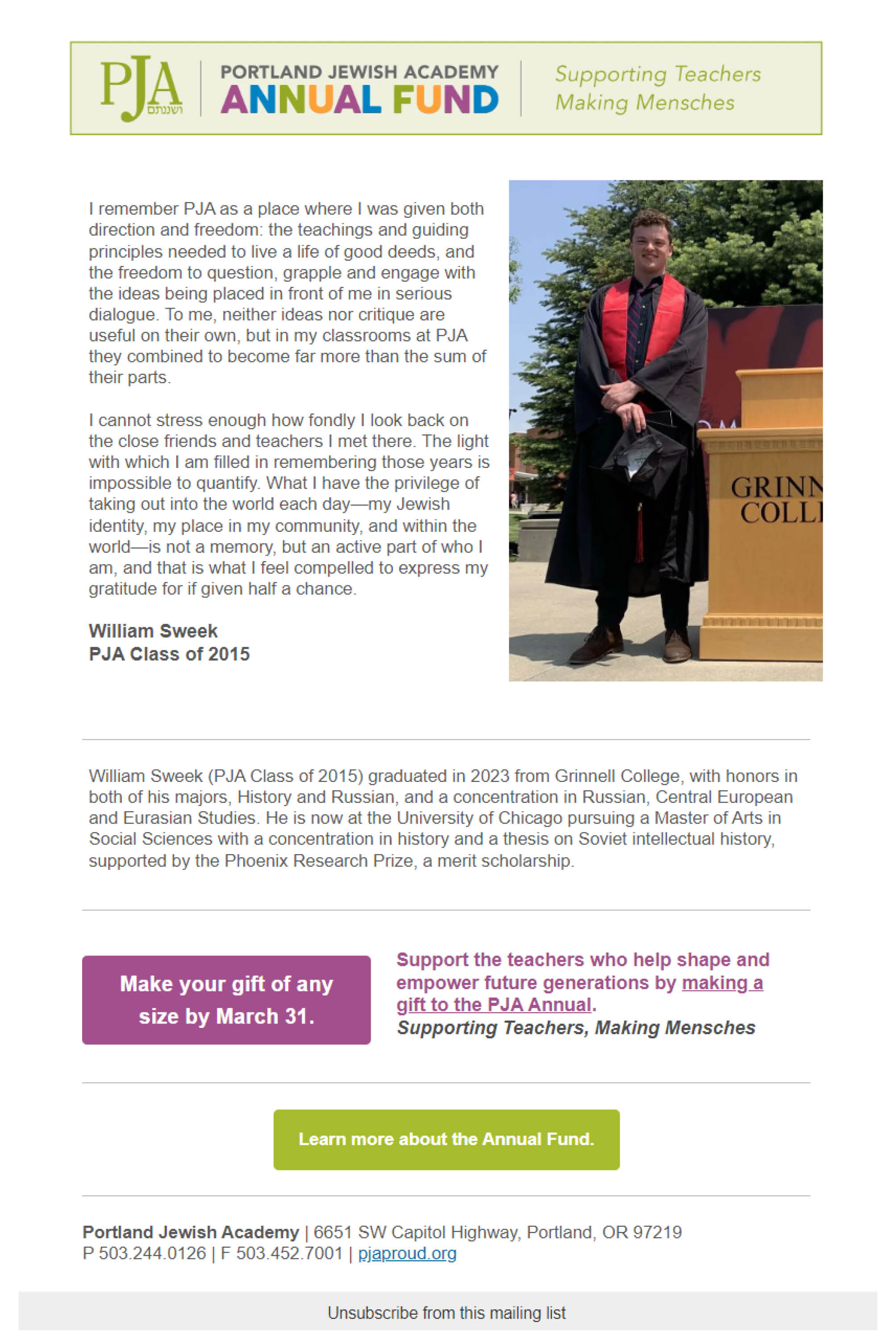 PJA Annual Fund Giving Email II