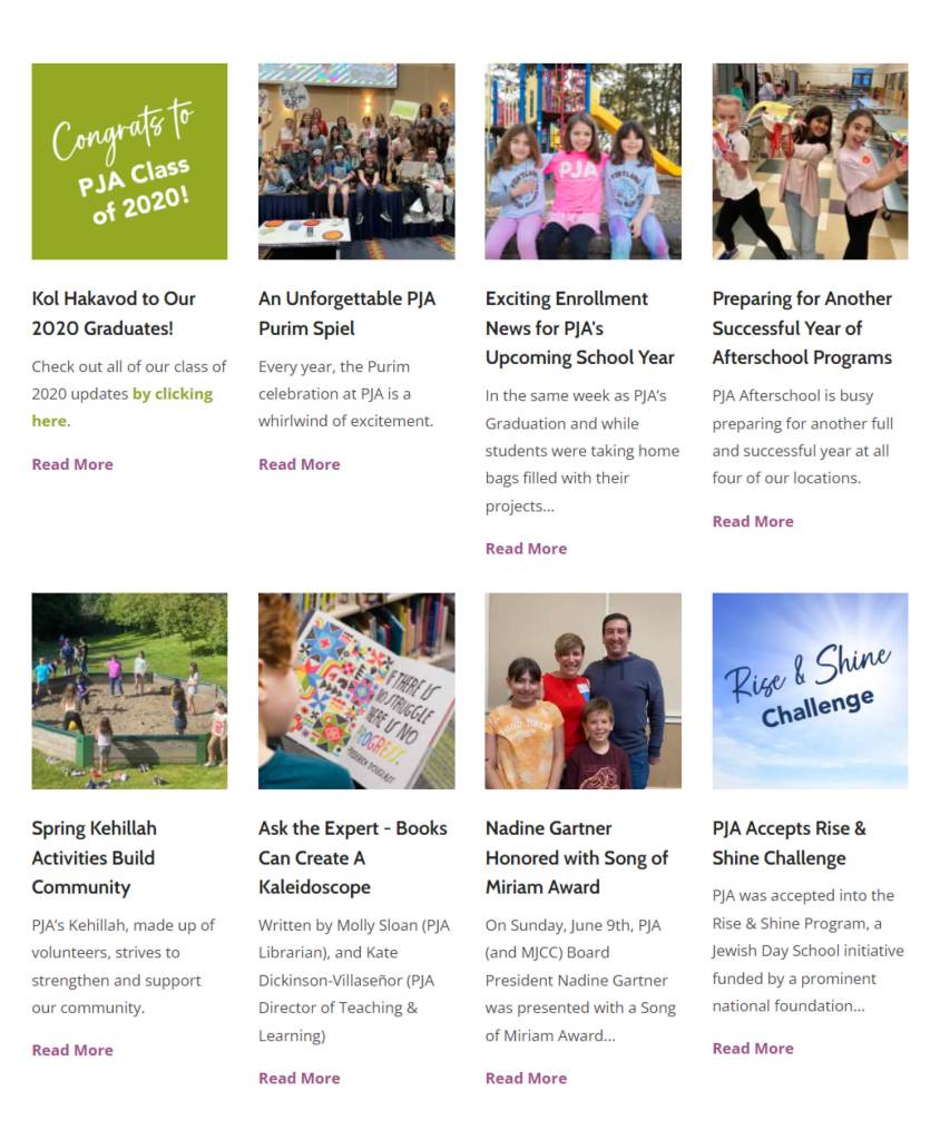 Please take a look at digital newsletters I’ve created (blog-post-style) by viewing PJA’s Digital Newsletter page, and the MJCC’s Digital Newsletter page. Please note: any newsletters published Fall 2024 or later were not created by me.