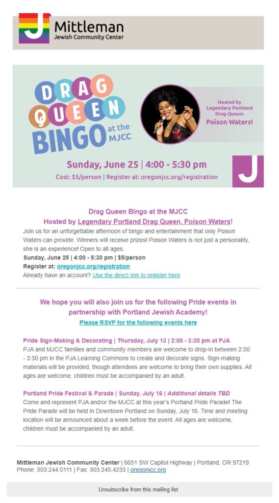 MJCC’s Drag Queen Bingo Email